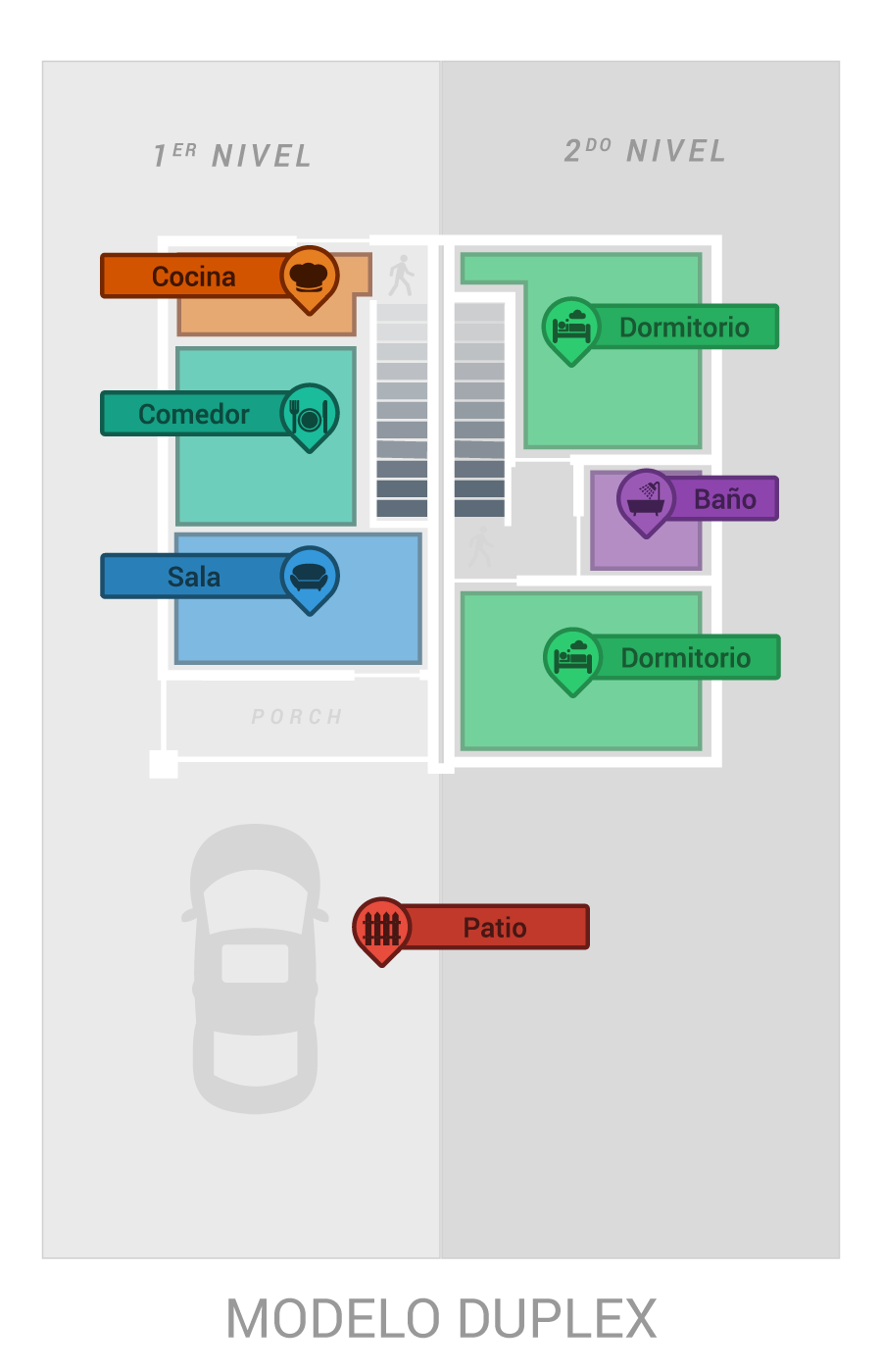 Nuestro modelo mas reciente, diseñada con dos niveles y separada con un sistema atenuador de audio que evita que los sonidos salgan de casa, dándote mas tranquilidad, paz y privacidad.